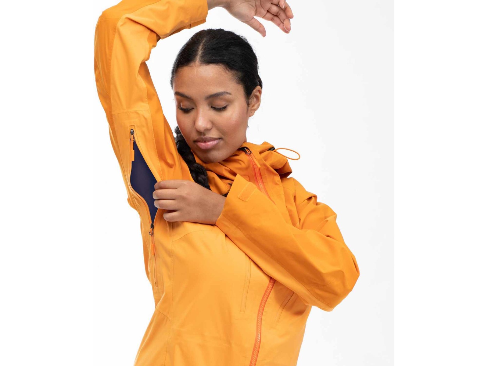Tolle Optik gepaart mit überzeugender Funktion: Die Cecilie 3L Jacket besteht aus 3-lagigem Dermizax®NX, einem Material aus zu 15 % auf pflanzlicher Basis hergestelltem Ecodear®-Polyester. Zusätzlich enthält die Jacke bluesign® approved fabrics and trimmings. Praktisch und gut durchdachte Funktionen wie etwa Belüftungsreißverschlüsse unter den Achseln ermöglichen dir die Belüftung an deine Bewegungsintensität anzupassen. Geräumige Napoleontaschen auf der Vorderseite erlauben einen einfachen Zugriff auf kleinere Gegenstände und Zwischenmahlzeiten für unterwegs. Die helmkompatible Kapuze mit verstärktem Schild liefert guten Schutz gegen Regen und Wind. Mit längeren Ärmeln und einer perfekten Passform bietet die Jacke uneingeschränkte Bewegungsfreiheit. Zur Vermeidung von Reibung und Scheuerstellen auf der Haut wurde auf Seitennähte verzichtet. Dies kommt dir beim Tragen eines Rucksacks zugute und verringert den Verschleiß. Die Cecilie 3L Jacket wurde in Zusammenarbeit mit der professionellen Abenteurerin und Bergsteigerin Cecilie Skog entwickelt.