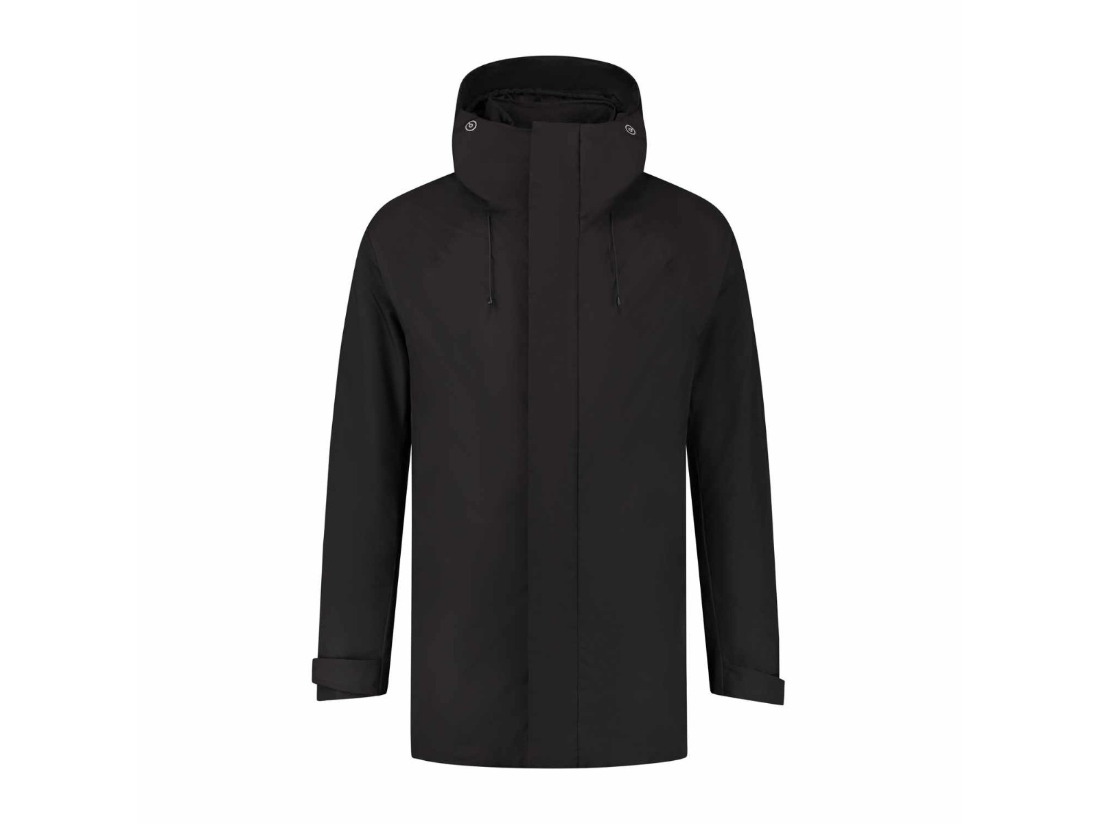 Die Virga Iso Long Jacket Men hat einen normalen Schnitt und besitzt eine feste, zweifach verstellbare Kapuze. Zwei dezente RV-Seitentaschen und eine RV-Innentasche auf der linken Seite sowie ein weich abgepolsterter Innenkragen runden die Ausstattung ab. Beim Raddfahren erleichtert der Zwei-Weg-Front-RV die Bewegungsfreiheit. Alle Klettverschlüsse (RV-Abdeckung und Ärmel) sind aus dem wenig agressiven Klettmaterial gearbeitet. Eine weiche Innenstulpe am Ärmelabschluss verhindert Zugluft.