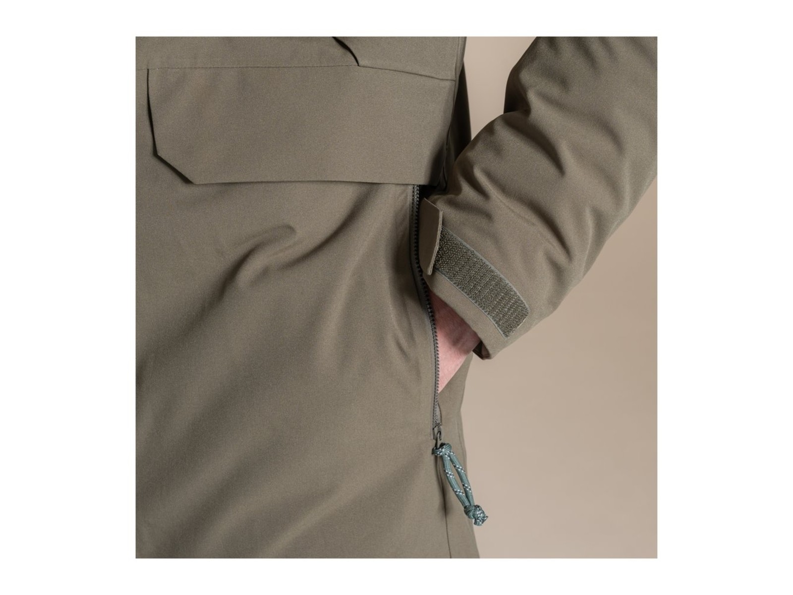 - Pflegehinweise: Waschbar bei 30 °C, Schonschleudern, Maschinenwäsche mit einem GTX-Waschmittel oder reiner Seife, keine Bleichmittel, keine Weichspüler, nicht chemisch reinigen, bei niedriger Temperatur trocknergeeignet, Bügeln bei geringer Temperatur auf der Außenseite, alle Verschlüsse vor dem Waschen schließen, Imprägniermittel bei Bedarf auftragen