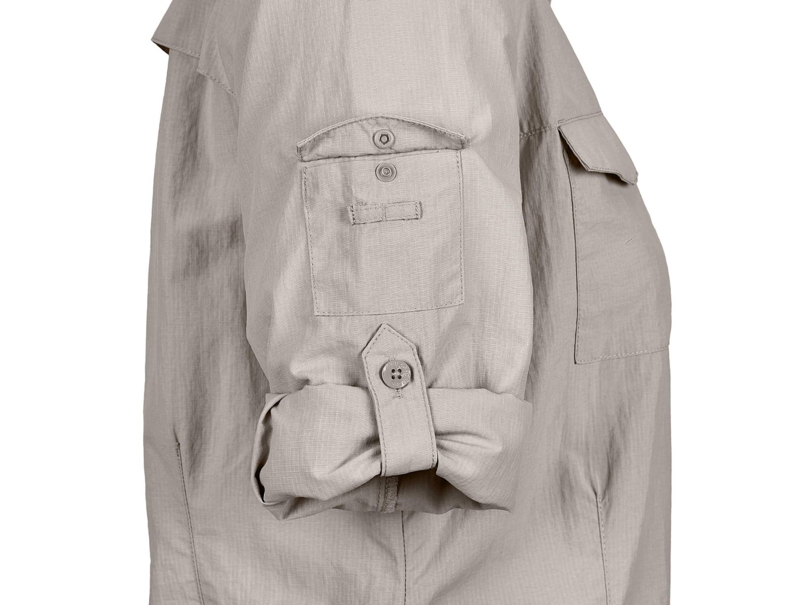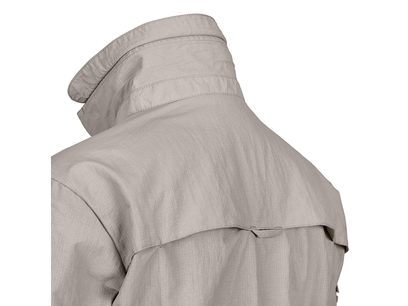 Praktisches und pflegeleichtes Reise-Hemd für warme Gefilde. Die NosiLife Adventure Long Sleeved Damenbluse III ist für heiße und insektengeplagte Gebiete gemacht. Das nachhaltige Material aus recyceltem Polyamid ist Dank Nosli-Life-Ausrüstung und einem hohen UV-Schutz ist das Hemd hochfunktional. Das material hat eine leichte Waffelstruktur und ist dadurch sehr reissfest. Ein ventilationsschlitz am Rücken trägt in warmen Regionen zum angenehmen Trageklima bei. Im Kragen ist zudem ein feuchtigkeitsleitendes und leicht kühlendes Mesh-Futter angebracht. Ist auf Reisen eine kurze Wäsche unvermeidlich, bewährt sich das schnelltrocknende Material und die Drying Loops. Die Ärmel der Langarmbluse lassen sich ganz einfach zum Kurzarm aufrollen und mit Lasche und Knopf fixieren. Der klassische Kragen kann zum Schutz vor der Sonne doppelt ausgeklappt werden. Für Stauraum sorgen einige Taschen. Eine lässt sich sogar durch einen kleinen Karabinerhaken verschließen
