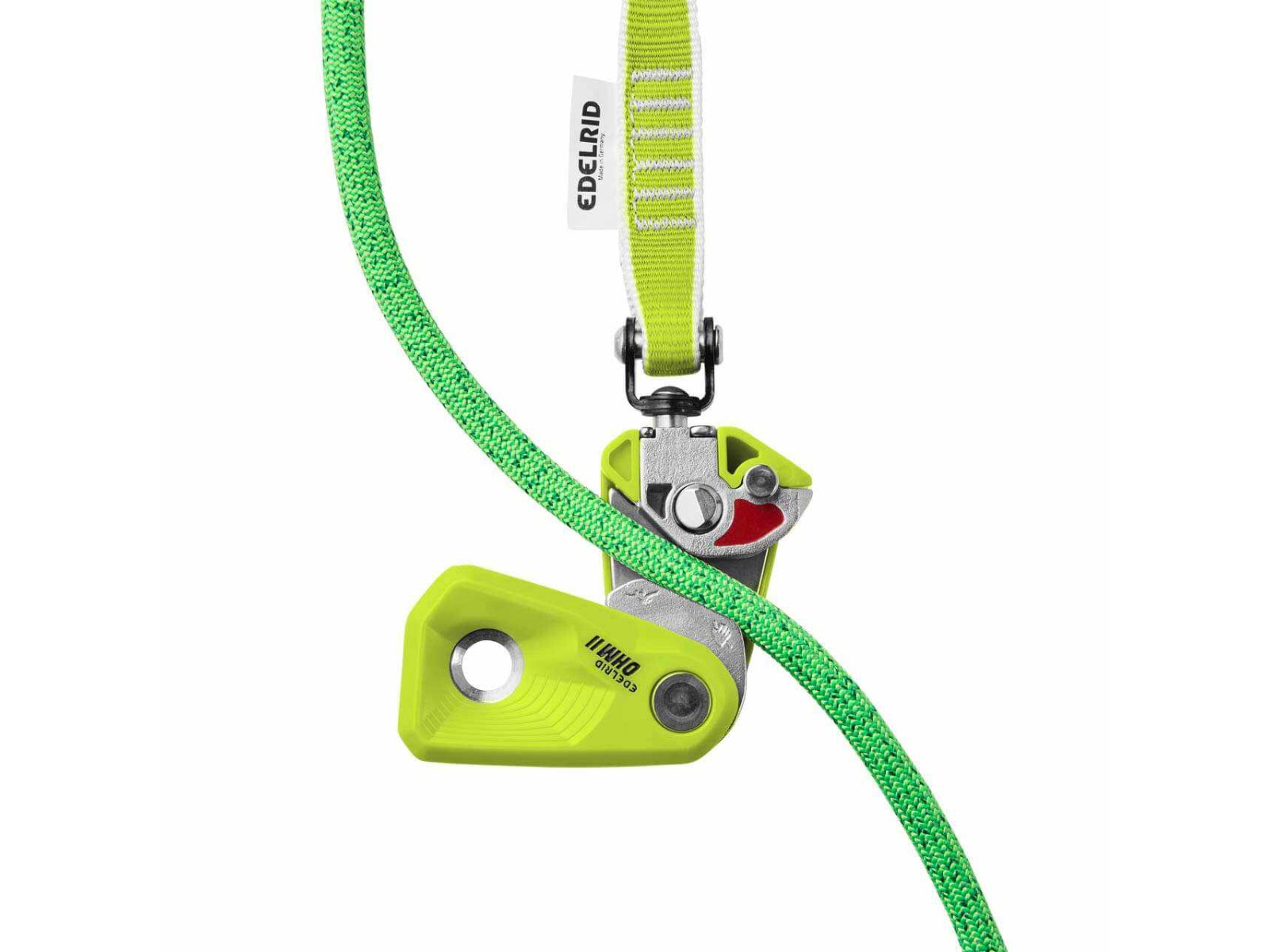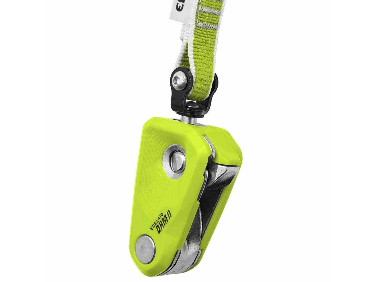Nomen est omen: Vorschaltwiderstand zur Erhöhung der Seilreibung bei einem großen Gewichtsunterschied zwischen (leichten) Sicherer und (schwerem) Vorsteiger. Das Ohm II wird in den ersten Haken der Sicherungskette eingehängt und reduziert bei einem Sturz das Risiko eines Bodensturzes. Das übliche Handling im Vorstieg wird nicht weiter beeinflusst. So können auch 10 – 40kg leichtere Sichernde ihren schwereren Partner sichern. Edelrid empfiehlt ein Mindestgewicht des Sichernden von 40kg. Für Einfachseile von 8,9 – 11mm. Das lästige Suchen nach dem Sandsack in der Halle muss nicht mehr sein – und auch draußen ist so ein Ohm deutlich geschmeidiger zu transportieren als der schwere Sack. Der Kletternde kann mit dem Ohm bis an seine Sturzgrenze heran klettern, ohne Gefahr zu laufen, dass der Sichernde den Sturz nicht halten kann oder dass der Sichernde schnell bis auf die Höhe der ersten Sicherung an die Wand herangezogen wird. Das Ohm wurde zur Saison 2024 überarbeitet: Die 2. Generation des innovativen und erfolgreichen OHM kommt mit einigen Updates für eine einfachere Bedienbarkeit. Der Vorschaltwiderstand zur Erhöhung der Bremswirkung bei Seilschaften mit großem Gewichtsunterschied besitzt ein Drehwirbelgelenk, das dem Gerät mehr Bewegungsfreiheit verleiht. Beim Einhängen des Geräts am ersten Haken spielt die Einhängrichtung daher keine Rolle mehr. Das Verschlusssystem verhindert ein versehentliches Öffnen des Geräts und vereinfacht das Einlegen des Seils und das Abbauen des Geräts beim Ablassen erheblich.
