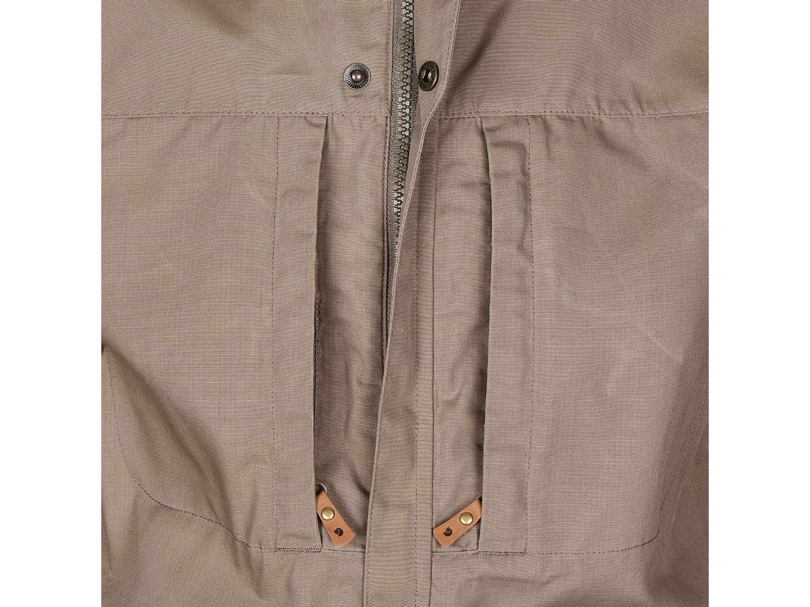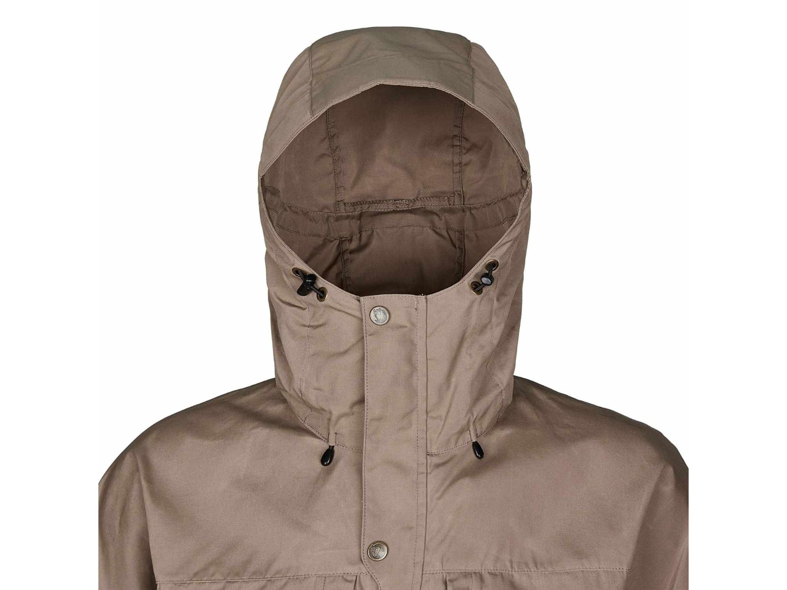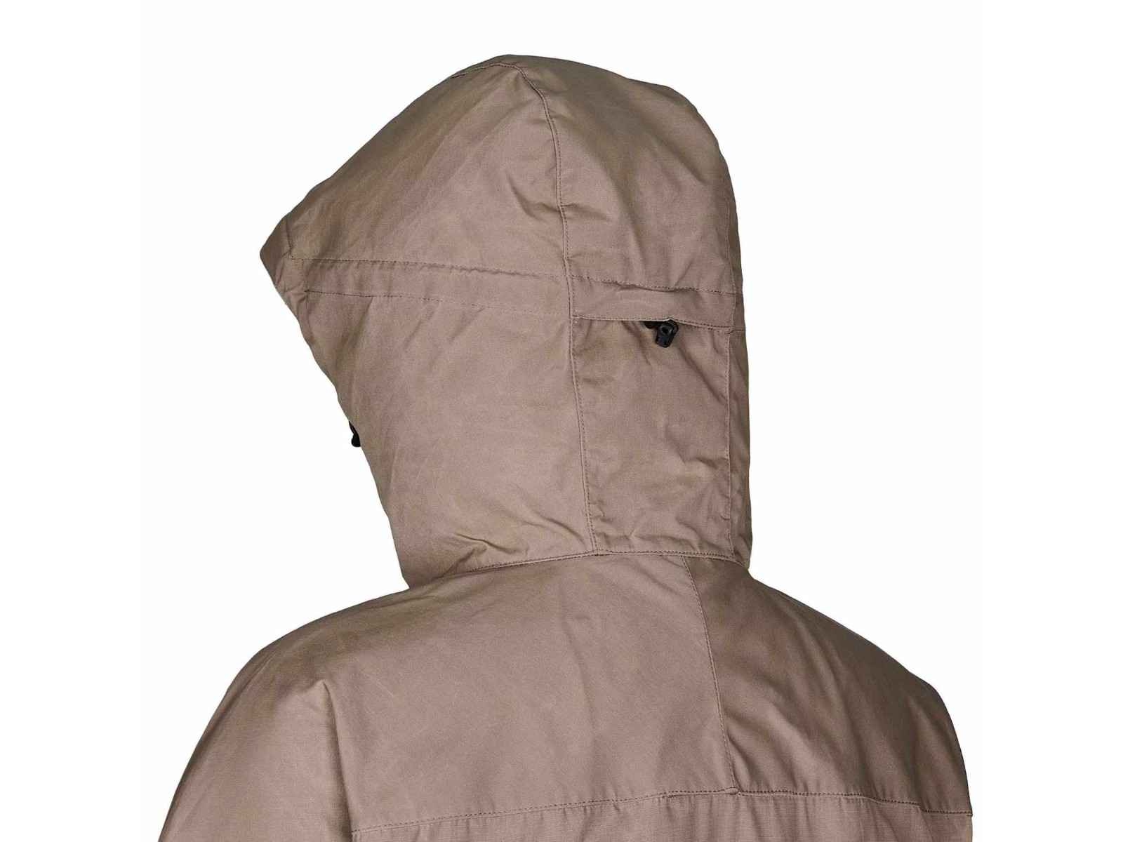 Hüftlange Outdoor-Jacke mit fester, regulierbarer Kapuze und verlängerter Rückenpartie. Ebenso bequem auf Wanderungen wie beim Radfahren von und zur Arbeit. Sie schützt vor Wind und leichten Schauern, während das Material gleichzeitig sehr atmungsaktiv ist. Dadurch schwitzt man nicht so stark wie in einer völlig wasserdichten Jacke- die Jacke ist ideal nauf Touren, bei denen die Intensität der Anstrengend häufig wechselt. Die Schulterpartie, Kapuze und Rückseite der Ärmel ist aus robustem, mückendichtem G-1000 Original gefertigt. Der Rest der Jacke besteht aus dem sommerlichen, dünneren G-1000 Lite. Beide Materialien sind wind- und leicht wasserabweisend und lassen sich hervorragend und unkompliziert mit Grönlandwax imprägnieren. Zwei vertikale Brusttaschen und zwei Eingrifftaschen, alle mit Patte. Zweiwege-Frontreißverschluss hinter einer Schutzleiste mit Druckknöpfen unten, im Brustbereich und am Kinn. Unten regulierbar, Druckknöpfe an den Ärmelabschlüssen.