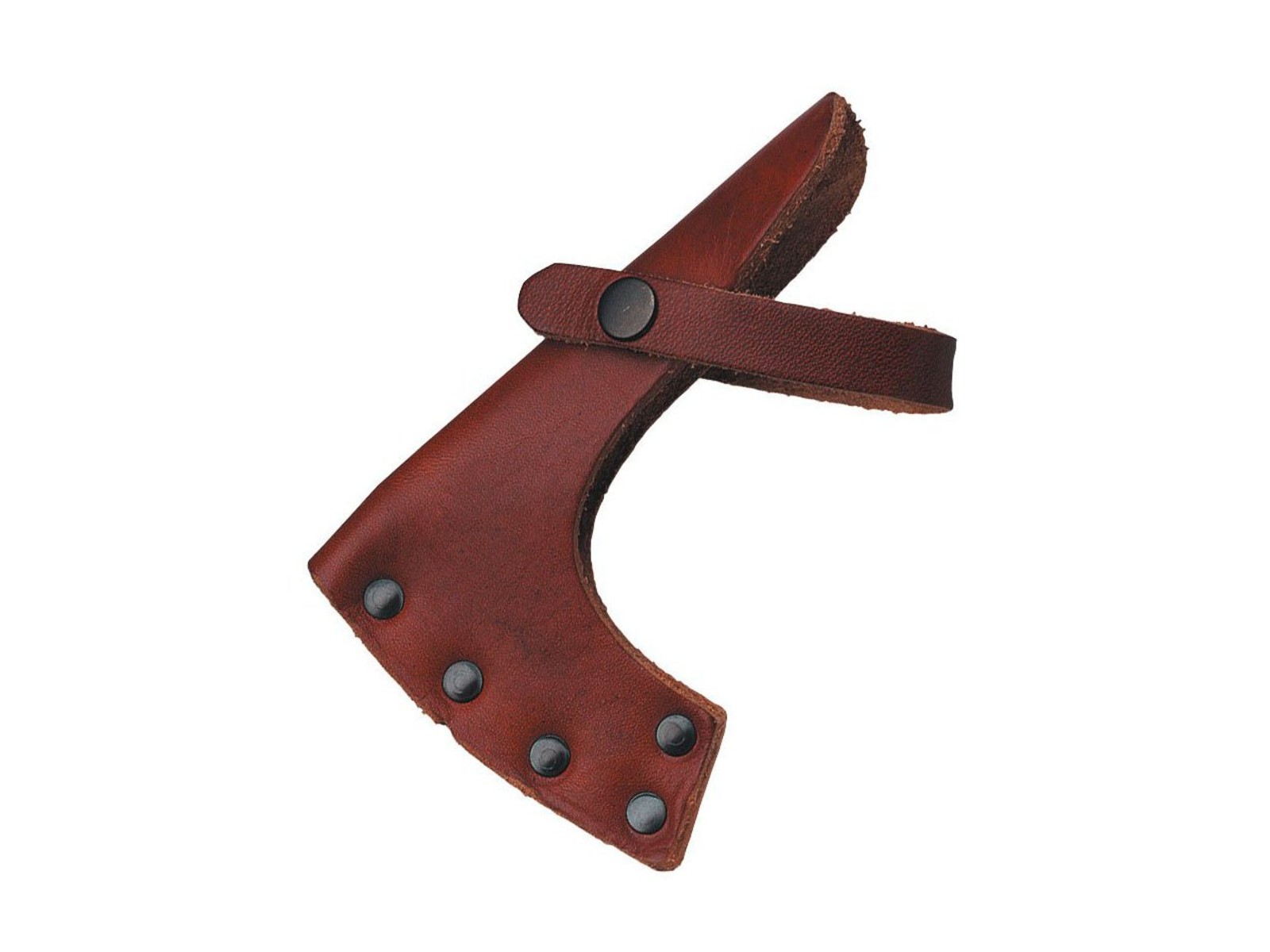 Geschützt wird der Axtkopf in einer pflanzlich gegerbten Lederscheide.