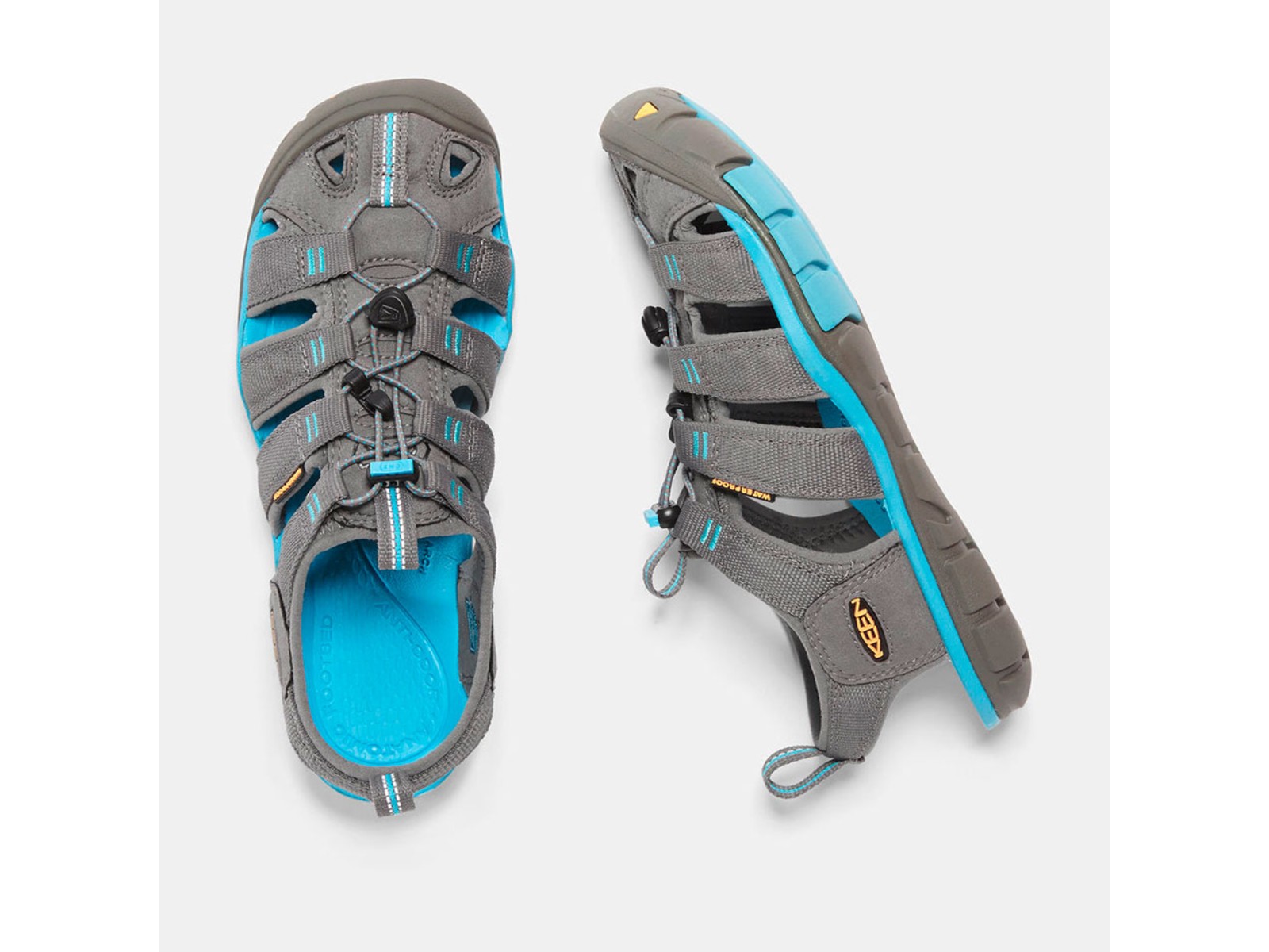 Flexibilität und Schutz in einer leichten Damensandale vereint. Die CNX Sohle und die Fußgewölbeunterstützung sorgen für ein leichtes Abrollen bei jedem Schritt. Ob im Kanu, auf der Wanderung oder in der City, durch die Keen typische Zehenkappe sind alle zehn Zehen gut verpackt und geschützt. Die Passform sitzt durch die Bungee-Schnürung nahezu an jedem Fuß. Maschinen waschbar.