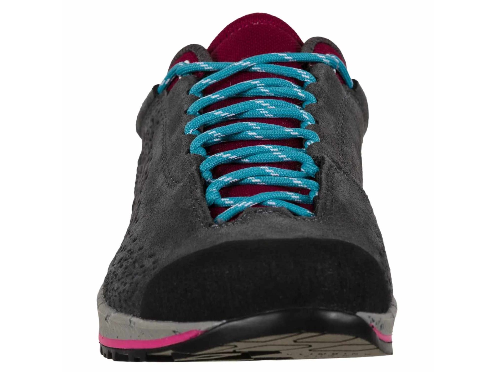 Der TX2 EVO Woman ist die Damenversion des leichtesten Schuhs der Traverse X Approach-Serie: erfüllt die Anforderungen an Grip, Schutz, minimales Volumen und Leichtigkeit, die in technischen Zustiegen und bei Mehrseillängenrouten erforderlich sind. Der Schuh verfügt über eine Sohlen-Einheit mit 100% neubesohlbarer Außensohle, die seinen Lebenszyklus verdoppelt, und er besteht aus recycelten Materialien, um die Umwelt zu schonen. Die Sohlen-Einheit würde konzipiert, um eine einfache und schnelle Neubesohlung zu ermöglichen. Die Außensohle kann ausschließlich durch autorisierte La-Sportiva-Fachhändler ersetzt werden. Das Obermaterial ist nahtlos und dank der integrierten Zunge, die Leerräume beseitigt und den Fuß umschließt, sehr umhüllend, für maximalen Komfort und Schutz. Das für das Obermaterial, die Schnürsenkel, das Ortholite® Hybrid Approach-Fußbett und einen Teil des EVA der Zwischensohle eingesetzte Gewebe wurde aus umweltfreundlichen, vegan-friendly Materialien hergestellt. Vibram® IdroGrip-Sohle mit „Climbing zone“, für maximalen Grip auf technischem Boden entwickelt. TX2 Evo: renew, reuse, resole.