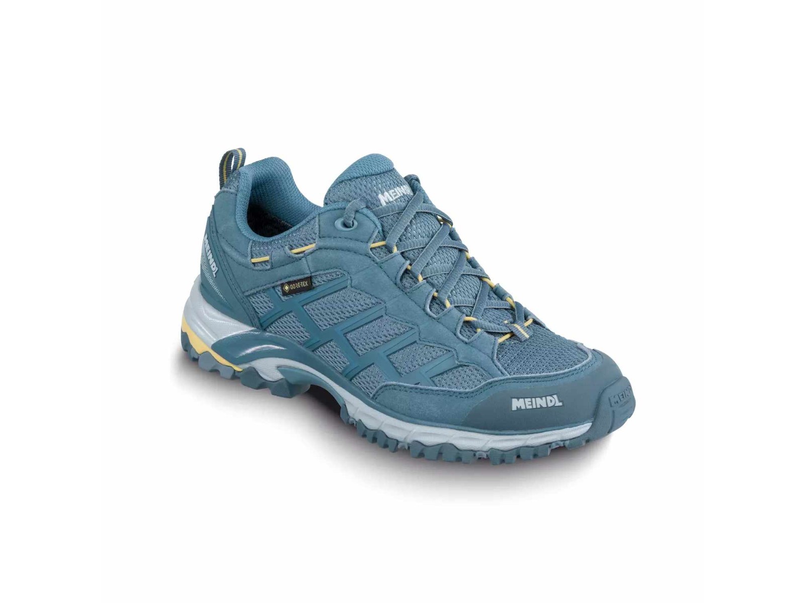 Der Caribe Lady GTX ist mit rund 600 g einer unser leichtesten Multifunktionsschuhe für Damen. Das luftige Mesh-Außenmaterial unterstützt die sportliche Optik. gedacht ist der Schuh für leichte Wanderungen, sportliches Walking oder Speedhiking oder als universeller Reiseschuh. Die leichtgängige Duo-Lacing Schnürung reguliert nicht nur die Weite am Vorfuß, auch der schmal gestaltete Fersenbereich wird mit erfasst, sodass für einen rundum festen Sitz gesorgt ist.Der Halbschuh ist aus leichten Synthetikmaterialen gefertigt und partiell mit Nubukleder verstärkt. Fersenbereich und Schuhspitze sind zusätzlich stabilen Kappen aus Gummi, bzw. Kunststoff geschützt.Für die nötige Wasserfestigkeit sorgt die verbaute Goretex-Membran, die griffige Profilsohle von Meindl bietet eine erfreuliche Dämpfung.