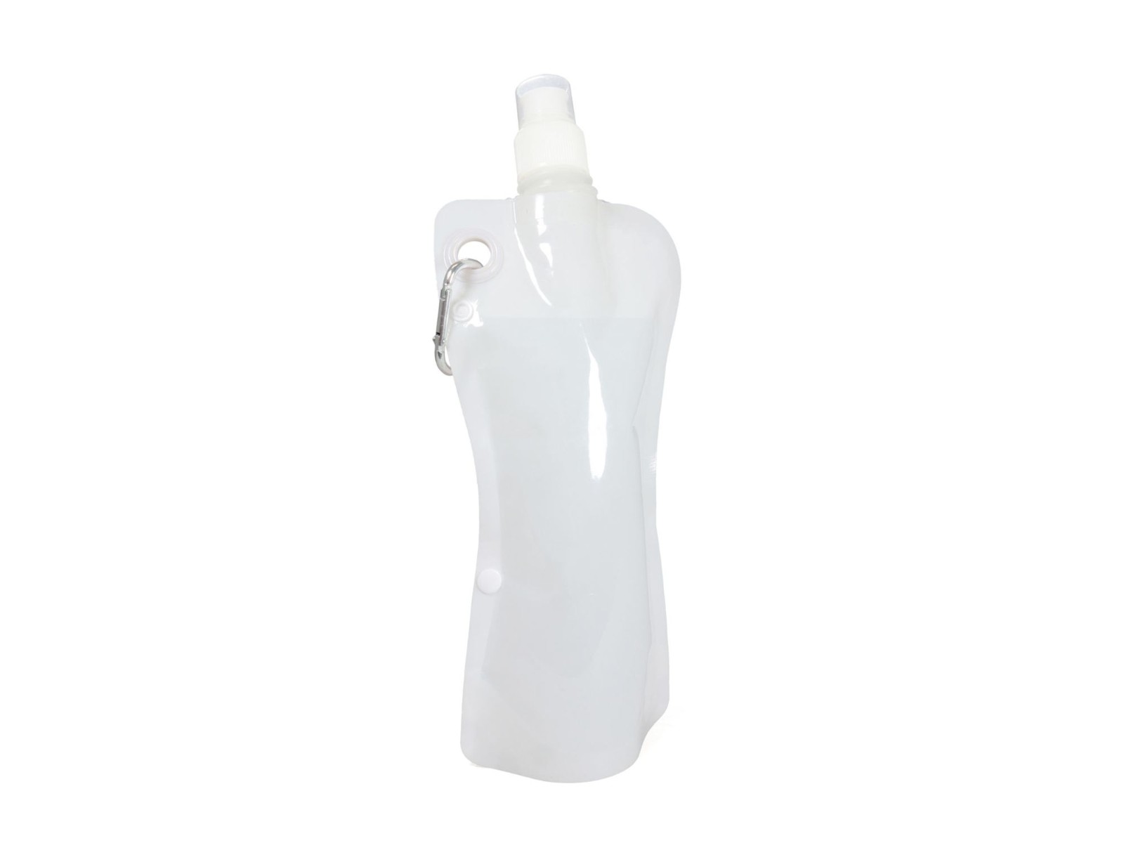 Sehr flexibel einsetzbare Faltflasche. Kann sehr klein zusammengefaltet bzw. gerollt und mit dem praktischen Druckknopf fixiert werden. Die Faltflasche hat einen Sporttrinkverschluss mit Abdeckkappe, welcher einfaches Trinken und den sicheren, dichten Flüssigkeitstransport garantiert. Dank verstärkter Öse und mitgelieferten Karabiner, kann die Flasche überall schnell und einfach befestigt werden. Ideal auf Festivals.
