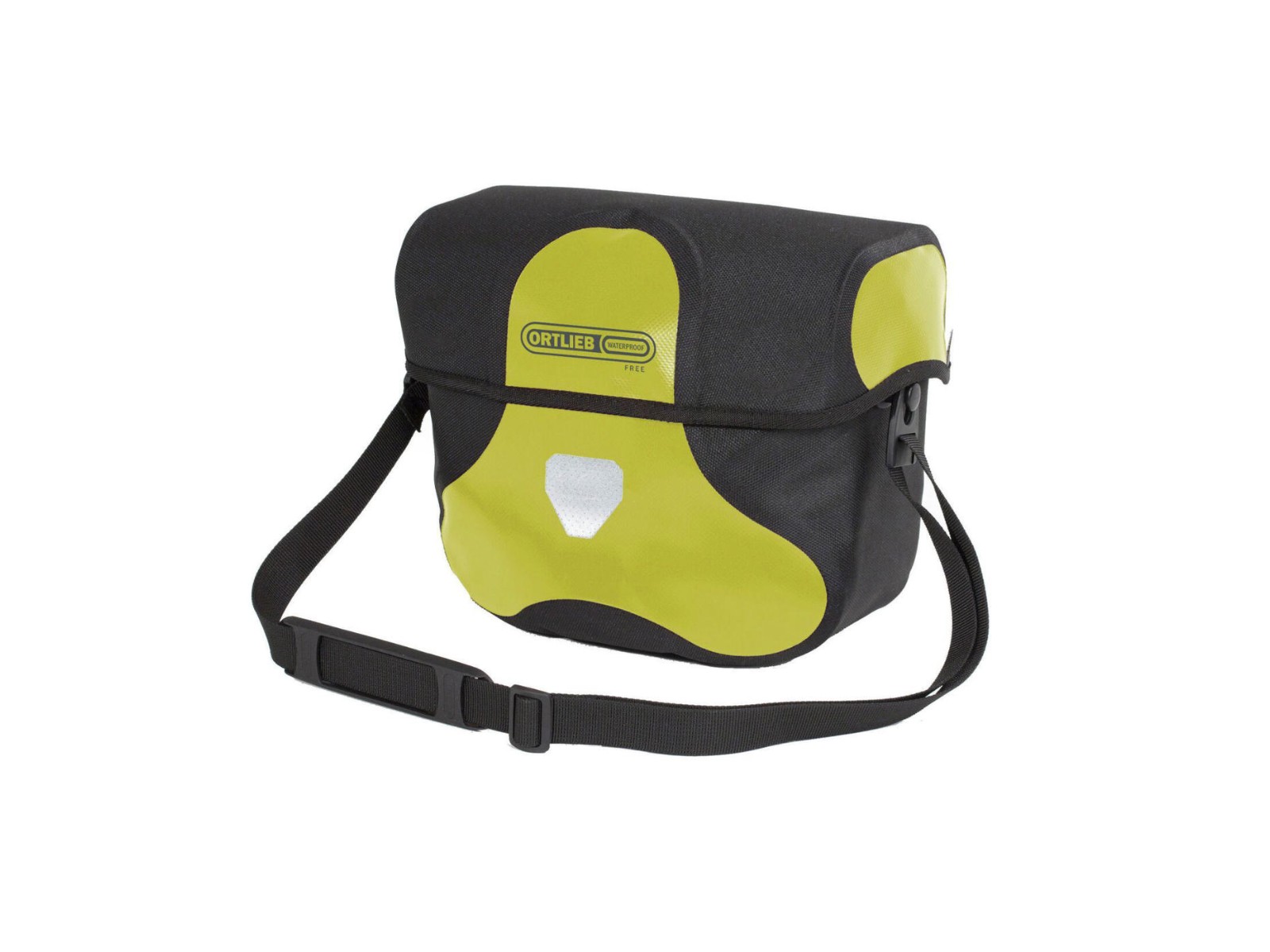Die Ultimate Six Free – eine Lenkertasche mit abschließbarem magnetischem Deckelverschluss. hergestellt aus PVC-freiem Material und wie bei Ortlieb üblich extrem wassergeschützt und robust. Geliefert wird die Tasche mit einer abschließbaren Halterung, einer Innentasche mit Reißverschluss und Schlüsselkarabiner, einer Innenunterteilung, Tragegurt und Reflektor. Die Tasche passt an Lenker bis 31,8 mm Durchmesser und ist zudem kompatibel mit der KLICKfix Halterung von Rixen&Kaul.