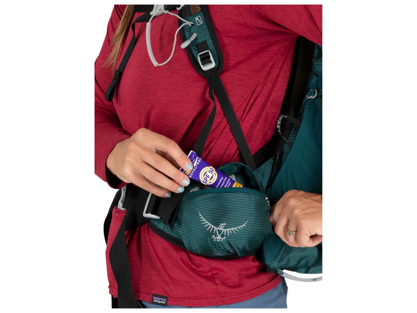 - Zwei Hüftgurttaschen mit Reißverschluss, um das Nötigste griffbereit zu haben