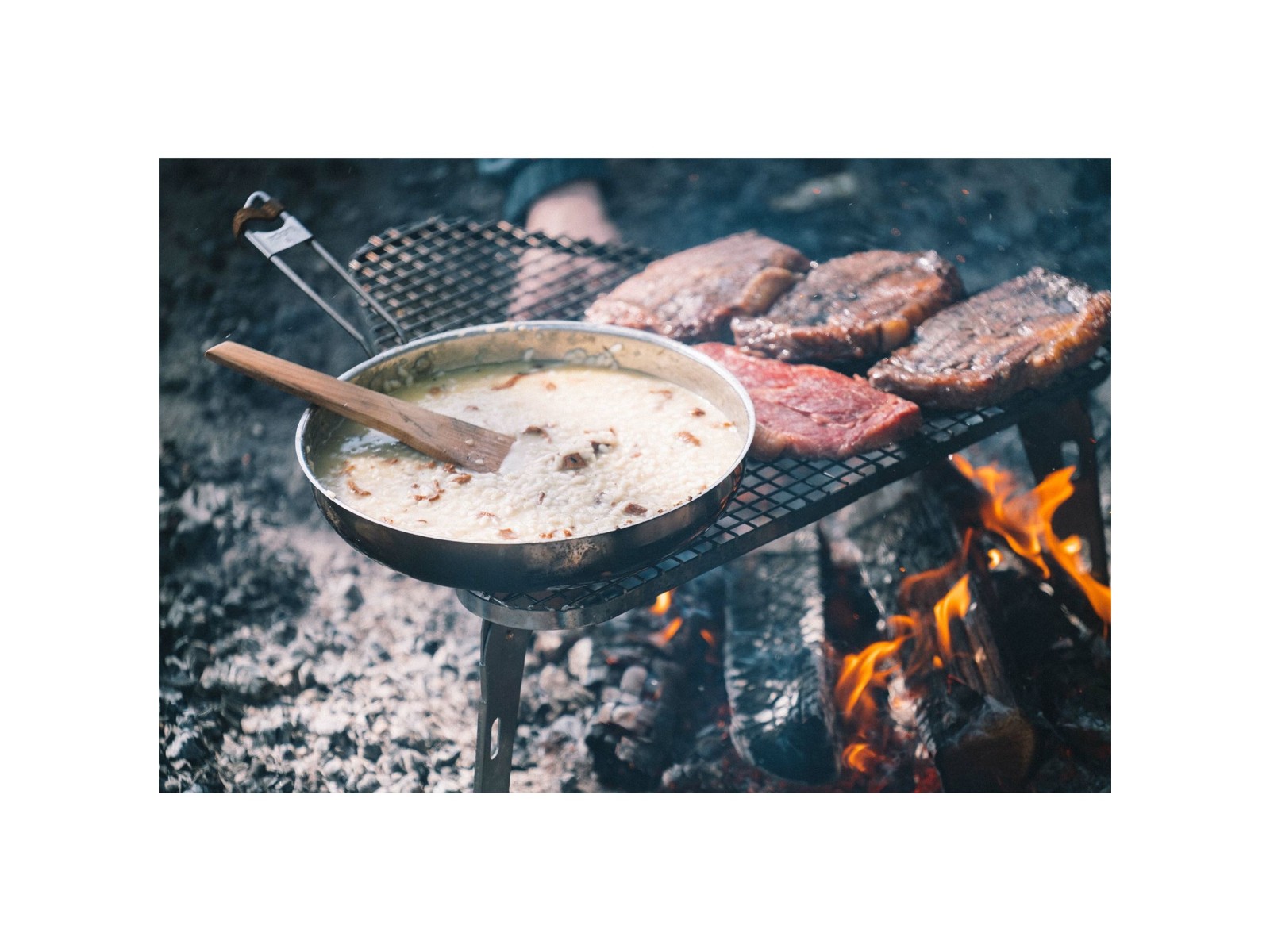 Multifunktionaler und langlebiger Feuerständer, der das Kochen auf offenen Feuer zu einem wahren Vergnügen macht. Der Rahmen aus rostfreiem Edelstahl ist robust und solide. Mit dem dazugehörigen Grillrost kann er auch mit Edelstahltöpfe oder Pfannen verwendet werden. Durch den höhenverstellbaren Grillrost ist die Kochtemperatur kontrollierbar. Dank seines kompakten, flach zusammenklappbaren Formats, kann dieser Feuerständer leicht in der dazugehörigen Tasche verstaut werden.