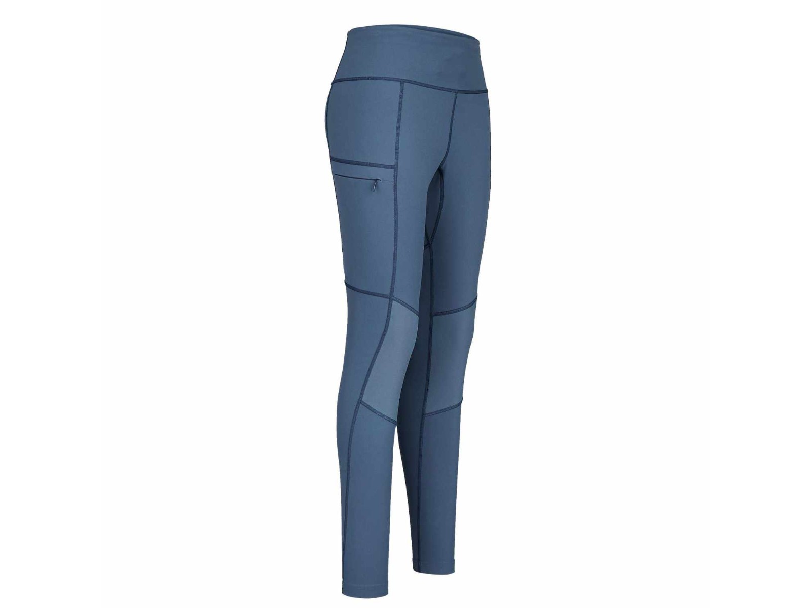 Gut geschnittene, hoch elastische und robuste Damen-Tights fürs Trailrunning, Yoga, Bouldern, Sportklettern oder Joggen. Verstärkte Einsätze an den Knien und Gesäß sorgen für Robustheit. Im Rücken sorgt der hohe Bund für Halt und Rückendeckung und lässt sich mittels Schnürzug gut einstellen. Das elastische Material ist mit einer PFC-freien DWR ausgestattet: das macht sie zwar nicht wasserdicht, bietet aber guten Schutz bei Regenschauern und verhindert, das Wasser einfach ins Material eindringen kann. Zwei dezente Oberschenkeltaschen (eine davon mit RV) runden die Austattung ab.