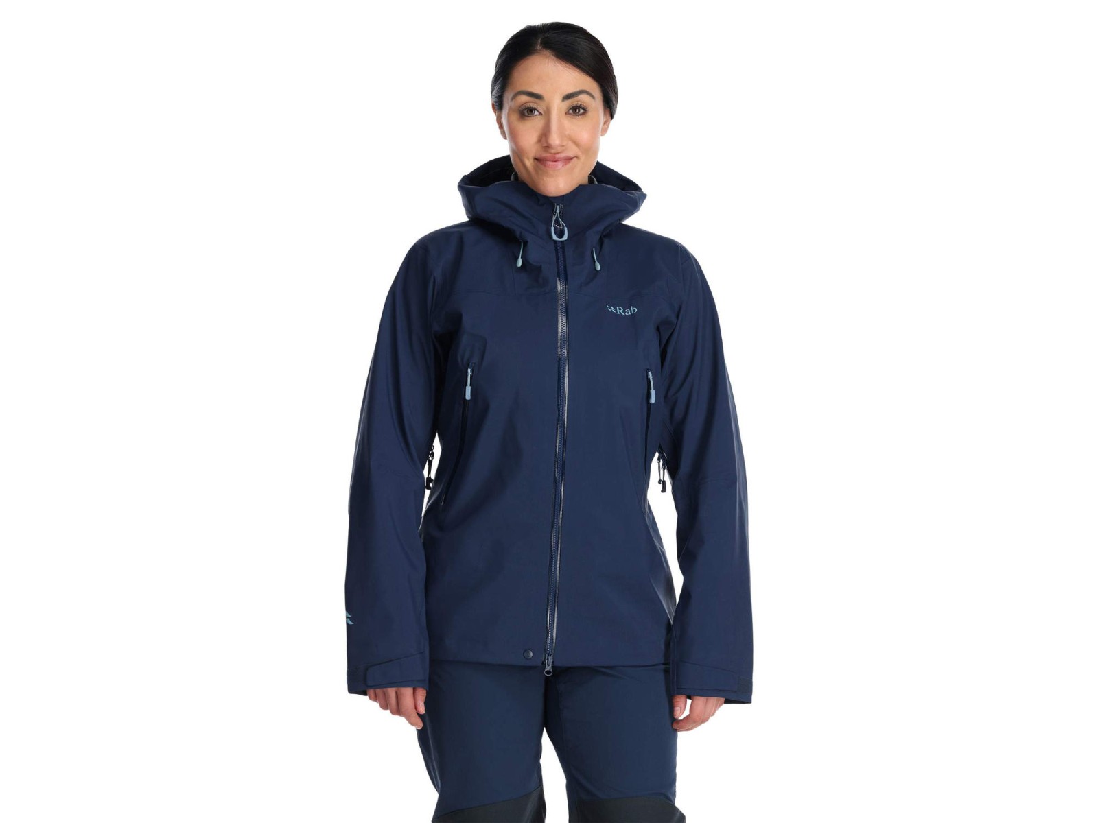 Die Kangri ist eine funktionsreiche, zuverlässige, bequeme und leistungsstarke Hardshell-Jacke für ganzjähriges Wandern, Trekking und allgemeine Bergaktivitäten. Die Kangri GTX Jacket Women wurde für diese Saison aktualisiert und verwendet jetzt ein recyceltes Außenmaterial mit einer Gore-Tex-Membran, die zuverlässige Wasserdichtigkeit auch unter schlechten bedingungen und ein angenehmes Innenklime gewährleistet. Der Schnitt der Jacke ist angenehm und nicht zu eng. RAB verwendet in der gesamten Jacke ein super robustes recyceltes 70D-Nylon. Dieses Obermaterial ist mit einer DWR (Durable Water Repellent) behandelt, um zu verhindern, dass Wasser in das Obermaterial eindringt und die Atmungsaktivität negativ beeinflusst. Unter diesem Oberstoff befindet sich eine Gore-Tex-Membran, die garantiert wasser- und winddicht ist. Schließlich sorgt ein Polyester-Innenmaterial für Komfort auf der Haut. Die Jacke hat eine voll verstellbare Kapuze mit einem laminierten und drahtgebundenen Schirm. Der nach unten gerichtete, mit Fleece gefütterte Kinnschutz und der Nacken leitet Schweiß ab und erhöht den Komfort. Der YKK AquaGuard Front-Reißverschluss verfügt über eine interne Sturmklappe, um das Wetter draußen zu halten, wenn es am schlimmsten ist. Weitere nützliche Features sind zwei Einschubtaschen mit YKK AquaGuard-Reißverschlüssen und einem internen Sicherungsclip. Dazu 2-Wege-YKK AquaGuard-Unterarm-Reißverschlüsse um die Wärme schnell und effektiv abzuführen, eine interne Reißverschluss-Sicherheitstasche, ein elastischer Saum, Anti-Snag-Haken und -schlaufenverstellbare Bündchen, ein Taillenkordelzug mit Einhand-Verstellsystem und zuletzt einige reflektierende Logos aus Sicherheitsgründen.