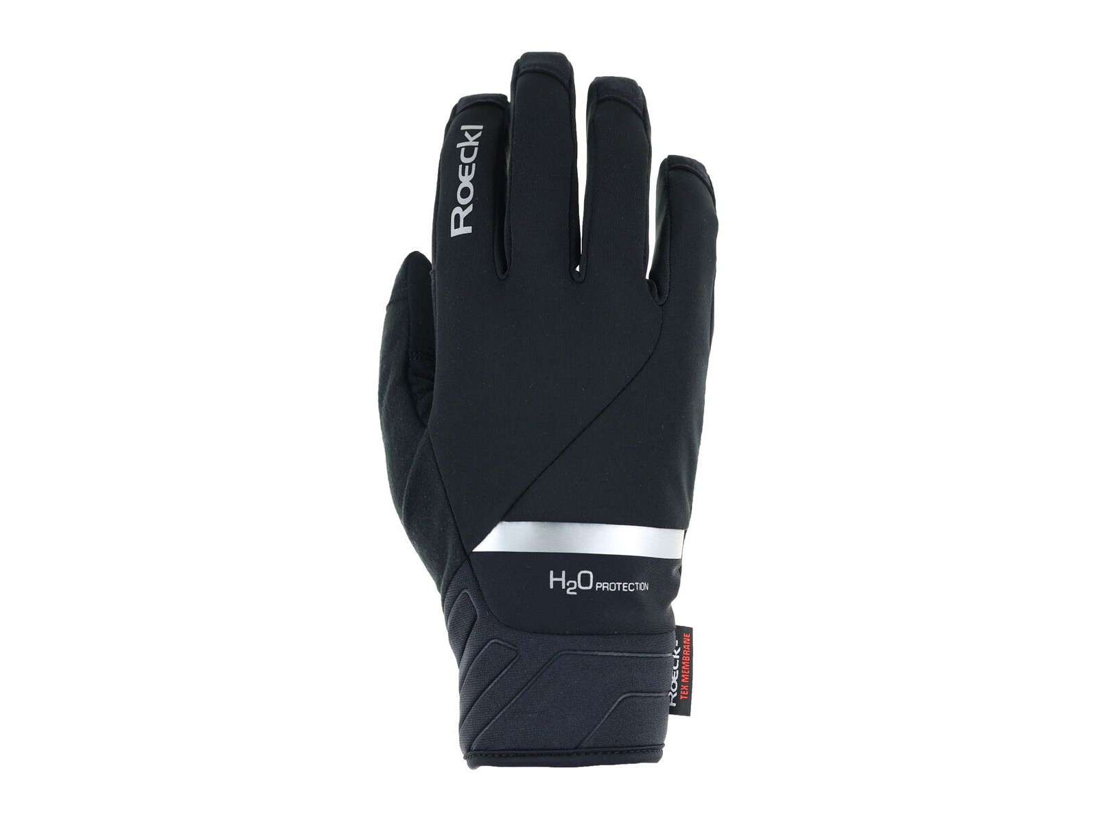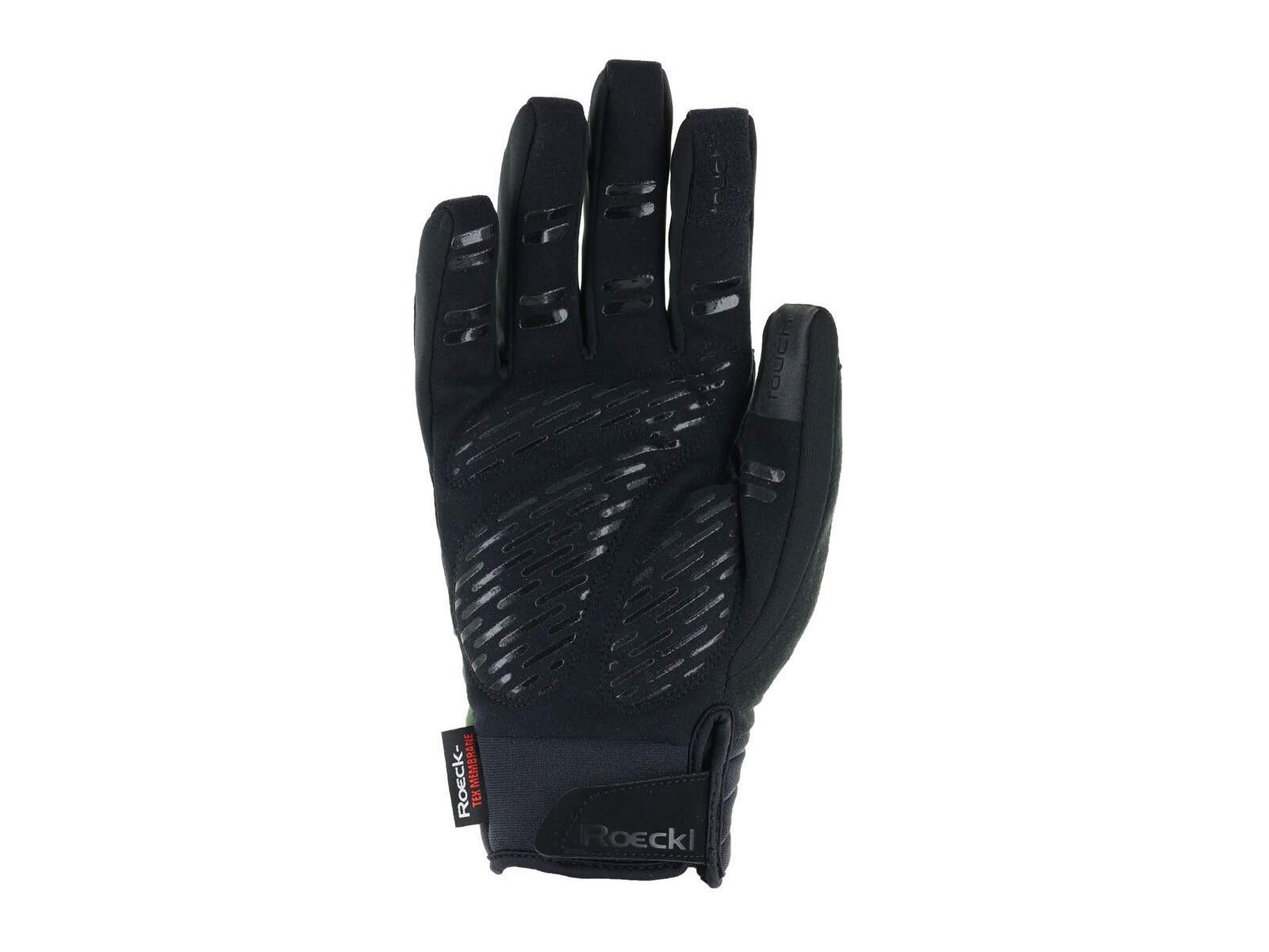 Der weich gefütterte Winterradhandschuh RANTEN 2 ist mit zahlreichen Performance-Features und -Materialien ausgestattet: Für Bestleistungen in Sachen Wetterschutz, Klimamanagement und Tragekomfort ist die dauerhaft wasserdichte, hochatmungsaktive ROECK-TEX MEMBRANE verantwortlich. Die großflächig silikonisierte Innenhand aus strapazierfähigem, wasserabweisend ausgerüstetem DURADERO Synthetiksuede ermöglicht einen rutschfesten Griff am Lenker und die feinfühlige Bedienung von Schaltung und Bremsen. Die Oberhand wurde aus ROECK-PROOF® Atlas gefertigt, ein PFAS-frei ausgerüstetes 3-Lagen-Softshell-Gewebe, das jede Bewegung der Finger und Hände elastisch mitgeht und zudem zuverlässig wärmt. Bezüglich Passform und Robustheit punktet der RANTEN 2 mit dem RAIL FINGER CUT mit leicht vorgekrümmten Fingern, bei dem das Material für noch besseren Verschleißschutz bis über die Fingerkuppen gezogen wurde. Dazu kommen ein ergonomisches Innenhanddesign mit Schaumstoffpolster und die COMFORT-INNOVATION von Roeckl Sports, eine nahtfreie Polsterung der beim Biken besonders beanspruchten Daumenbeuge. Der soft-wipe-Wischdaumen und die TOUCHSCREEN COMPATIBLE Funktion zum Tippen auf dem Smartphone mit Handschuh sind weitere praktische Details. Der breite, geschmeidige Neoprenbund mit Innenhand-Klettriegel ermöglicht einen passgenauen Sitz. Ein Lycra-Einsatz in Grün, Gelb, Rot oder Ton-in-Ton-Schwarz, der geprägte Bund, reflektierende Designelemente und das Roeckl Sports Reflect-Logo verleihen dem ansonsten schwarzen RANTEN 2 einen dynamischen Touch. Bei 30 Grad in der Maschine waschbar.