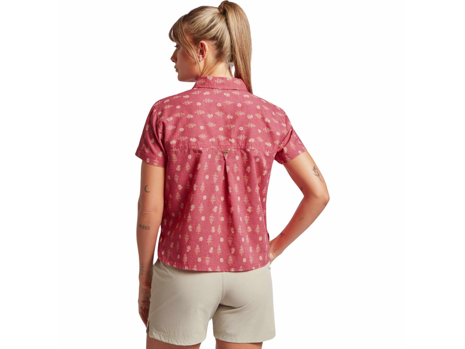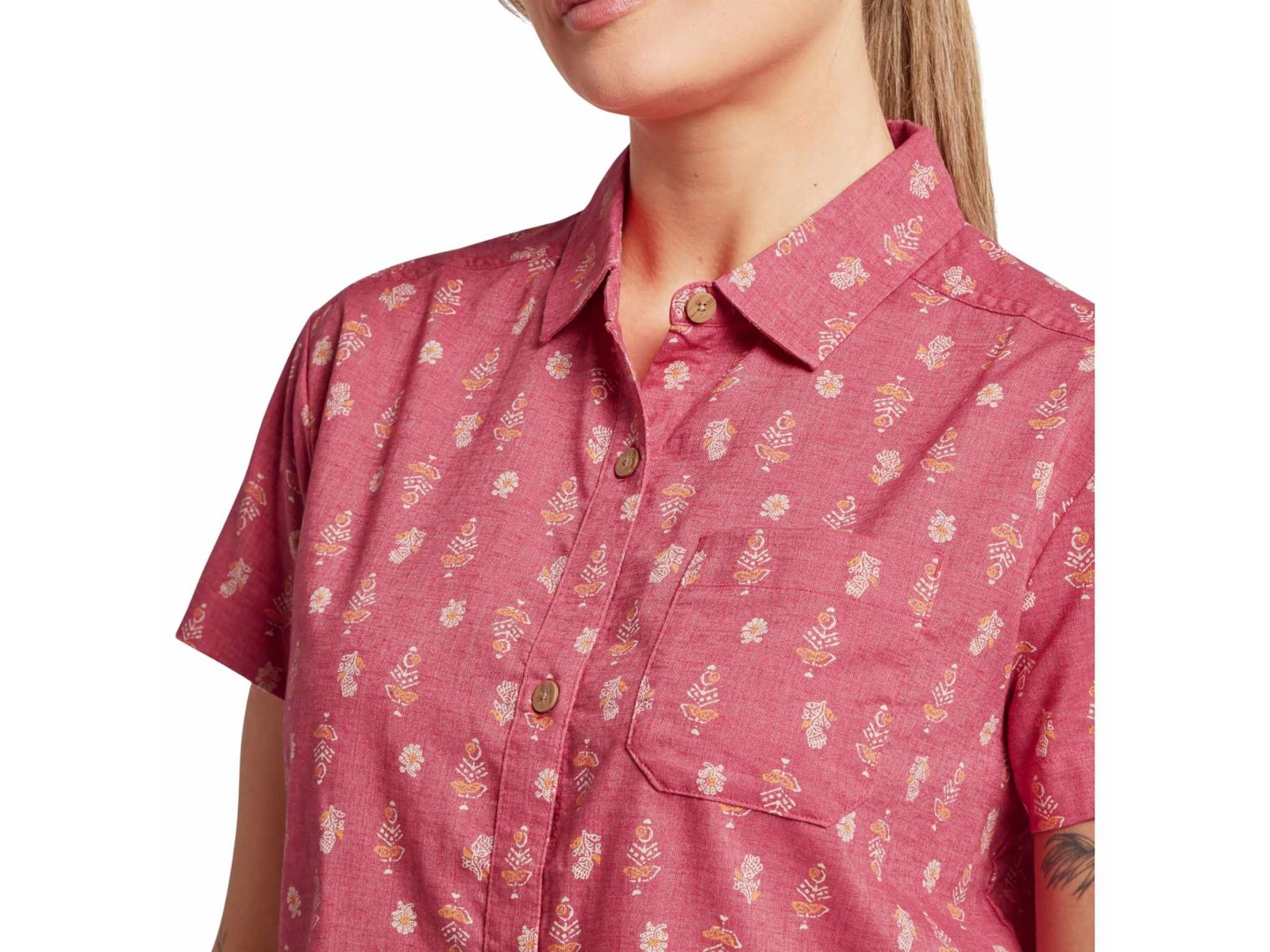 Das Jaya Camp Shirt von Sherpa ist eine locker sitzende, kurzärmelige Damenbluse für Reise, Freizeit und Outdoor für wärmeres Wetter. Sie punktet mit Vielseitigkeit. Denn der nachhaltige Materialmix aus recycelter Baumwolle und recyceltem Polyester ist weich, atmungsaktiv und bietet eine wirkungsvolle Temperatur- und Klimaregulierung. Die Rückenfalte sorgt für einen fließenden Fall des Stoffes und sorgt für ausreichend Bewegungsfreiheit. Typisch sind kleine "Sherpa-Details" wie der "unendliche Knoten" auf den Knöpfen. Der beschreibt die Vorstellung, dass alle Handlungen des Lebens miteinander verbunden sind und wird Dich als Glückssymbol gerne begleiten.
