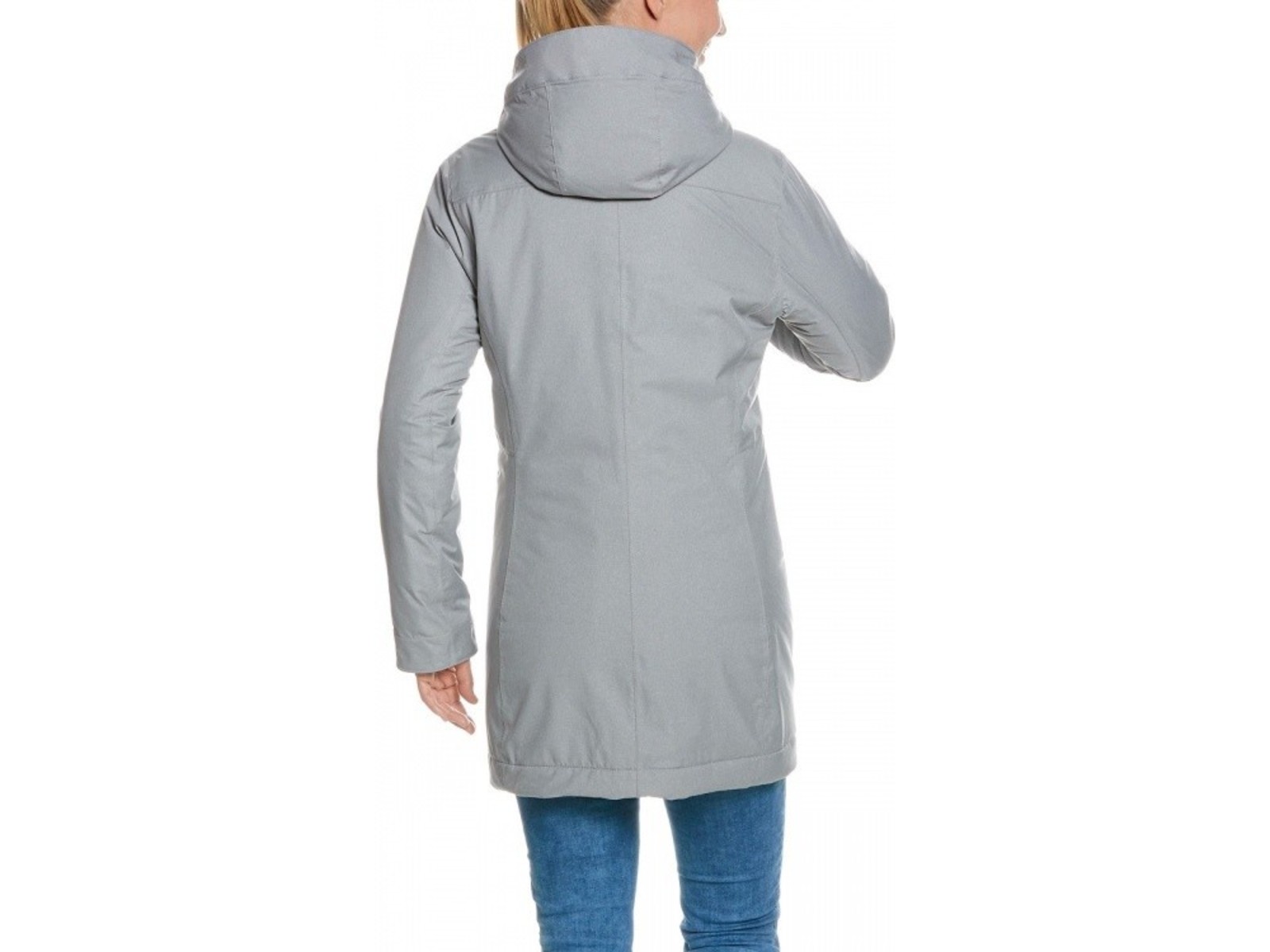 Der Ethies Coat von Tatonka ist ein wasserdichter Kurzmantel mit mit einer sehr gelungenen femininen Schnittführung. Der Mantel ist aus T-HardShell Melange 2L und PFC-frei ausgerüstet. Durch sein ein wattiertes, wärmeisolierendes Futter hat, hält er in der kühlen Jahreszeit kuschelig warm und durch seine atmungsaktive Membran auch schön trocken. Die Taschen sind ebenfalls mit weichem Futter ausgestattet, er hat zwei Paspeltaschen mit eingesetzten Klappen sowie zwei Reißverschluss-Innentaschen.
