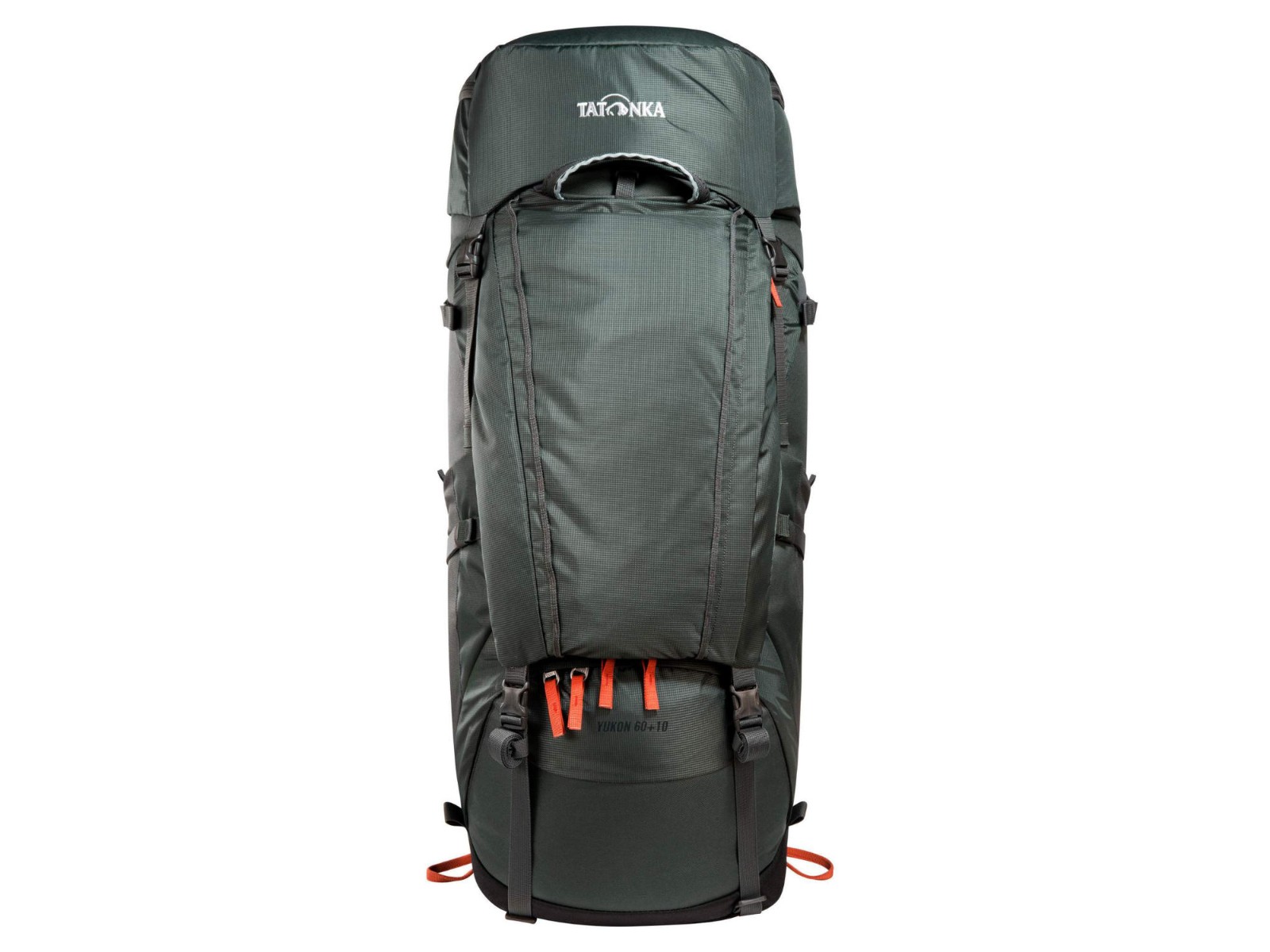 Der Tatonka Yukon 60 + 10 L ist der Klassiker unter den Tatonka Trekkingrucksäcken. Mit seinen reichlich 60 Litern plus Erweiterung Volumen bietet er genug Platz für die komplette Outdoor-Ausrüstung und ist für Trekker und Backpacker gleichermaßen geeignet. Das bewährte V2-Tragesystem für Lasten bis 25 Kilogramm: Das gewichtsoptimierte Tragesystem mit dreidimensional ausgeformtem Hüftgurt liegt komfortabel an der Hüfte an. Das System bietet eine äußerst effiziente Lastableitung in den Hüftgurt, und der Trekkingrucksack ist auch auf längeren Touren rückenschonend und angenehm zu tragen. Ein Traum für Backpacker: Die große Reißverschlussöffnung für schnelles Be- und Entpacken. Auf Reisen ist schnelles und einfaches Packen Pflicht! Aus diesem Grund verfügt der Backpacker-Rucksack über eine große umlaufende Frontöffnung. Die Zweiwegereißverschlüsse an der Seite des Yukon 60+10 ermöglichen jederzeit einen mühelosen Zugriff auf das Reisegepäck. Schutz vor Dieben oder schlechtem Wetter bieten die abschließbaren Reißverschlussschieber oder die integrierte Regenhülle. Materialschlaufen und -riemen, seitliche Kompressionsriemen und ein abtrennbares Bodenfach gehören zur Grundausstattung des Yukon 60+10.