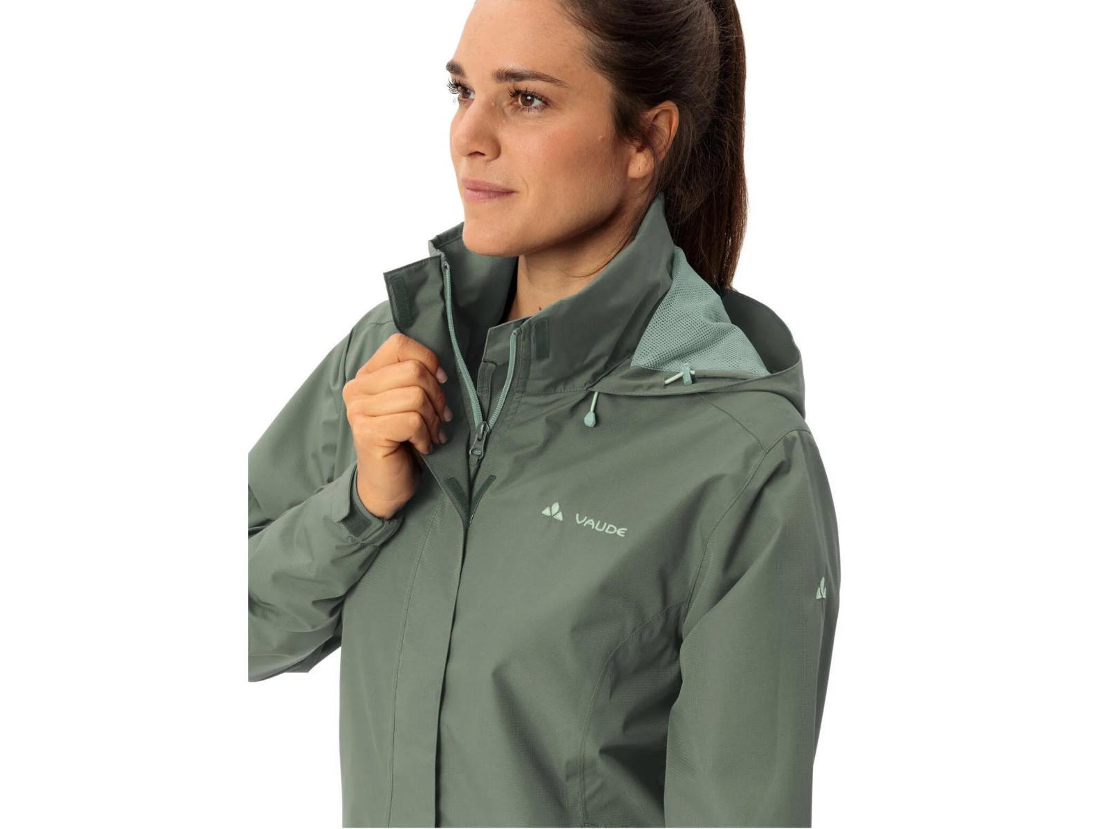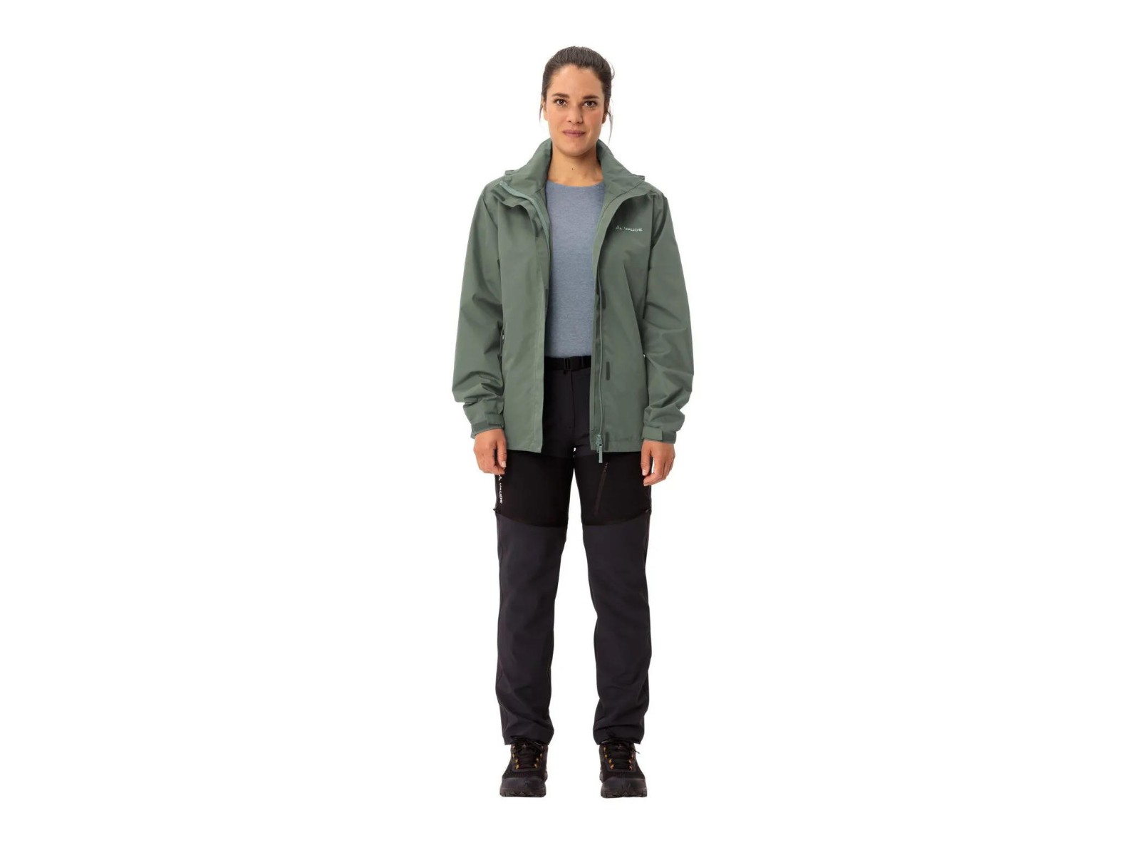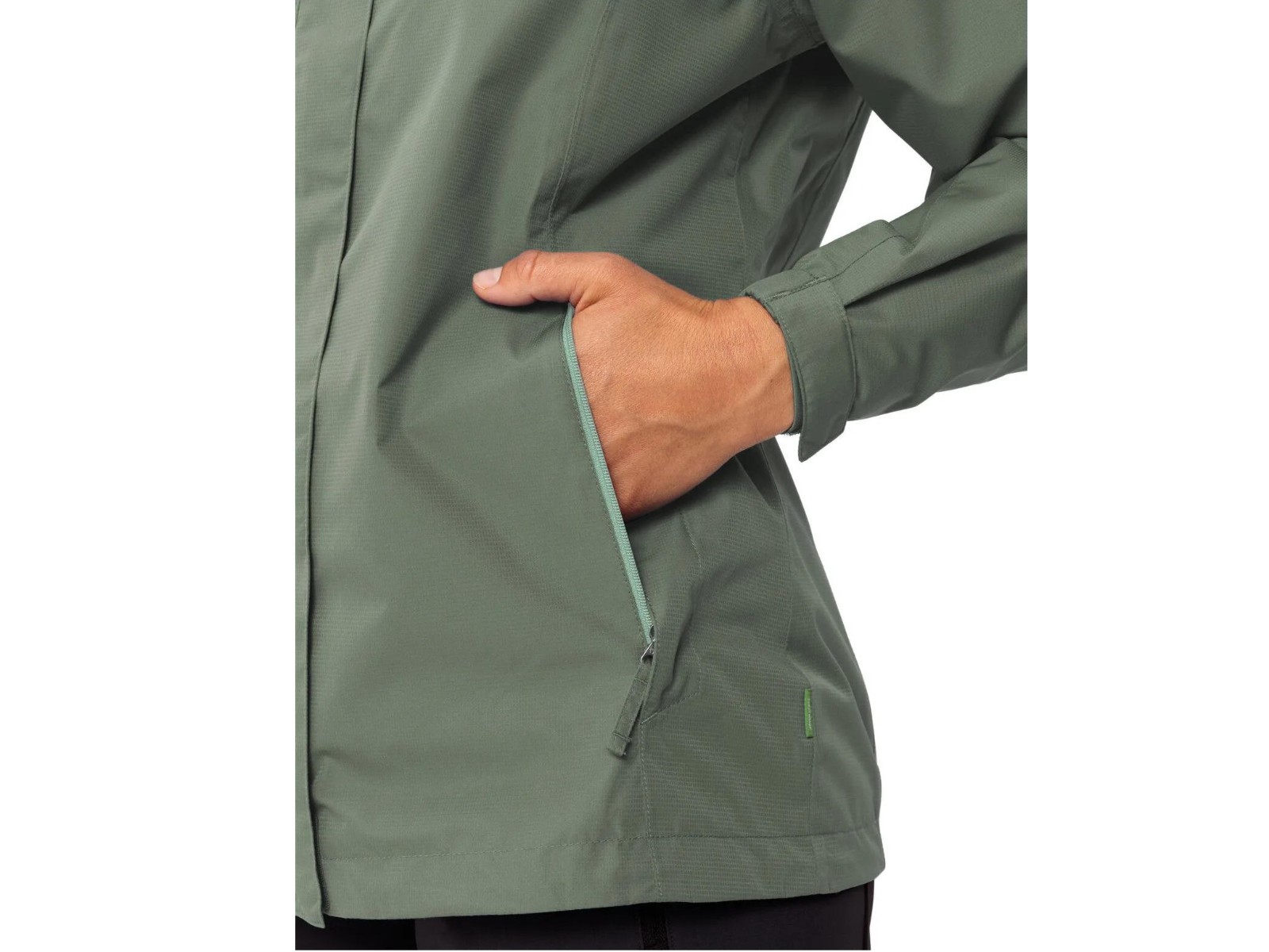 Ein Klassiker unter den leichten Regenjacken: Diese leichte Regenjacke für Damen hat sich längst als besonders beliebt etabliert – und das aus gutem Grund: Sie ist eine ideale Begleitung für Wanderungen und sämtliche Freizeitaktivitäten. Die Damen Regenjacke ist wasser- und winddicht sowie atmungsaktiv.Aufgrund des weichen, angenehmen und textilen Materials ist die Jacke "leise", sie raschelt nicht.Wenn man die Kapuze der Damen Regenjacke nicht braucht, kann man sie einfach im Kragen verstauen. Geldbeutel und Taschentücher finden in den beiden sicher mit Reißverschluss verschließbaren Taschen Platz. Sowohl Saum als auch die Ärmelenden lassen sich in der Weite verstellen; der Saum per Kordeln, die Ärmel per Klettverschluss. Sollte der Zwei-Wege-Reißverschluss an der Vorderseite eventuell kaputt gehen, ist er einfach zu reparieren. Das VAUDE Green Shape-Label steht für ein umweltfreundliches, funktionelles Produkt aus nachhaltigen Materialien.