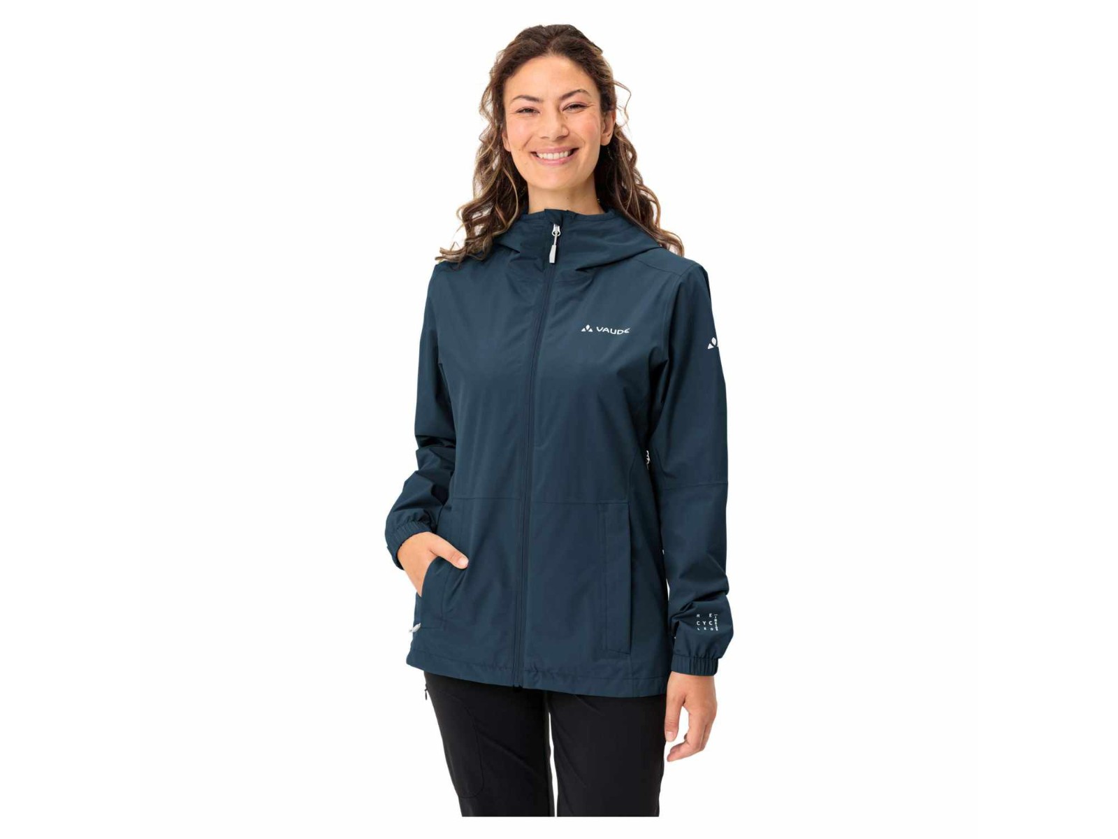 Die Neyland Jacket ist der Allrounder für Wandern, Trekkingreise, Uni- oder Berufsalltag. Die leichte, wasserdichte und gemütliche Regenjacke für Damen ist ein echtes Multitalent. Auch in Sachen Nachhaltigkeit punktet die Zwei-Lagen-Jacke: Das leichte und strapazierfähige Außenmaterial besteht zu 100 % aus recyceltem Polyester, das Innenfutter ist überwiegend aus recycelten Materialien hergestellt. Dank einer Ceplex-Active Membrane und einer PFC-freien Eco-Finish-Ausrüstung ist die Regenjacke für Damen hoch atmungsaktiv, wind- und wasserdicht. So bleibt Feuchtigkeit draußen und die Wärme drinnen. Für das individuelle Körperklima kommen die beiden Unterarmbelüftungen mit Reißverschluss um Einsatz – je nach Bedürfnis und Aktivität. Die Besonderheit der Damen-Regenjacke: Durch ein innen eingenähtes Elastikband lässt sich einerseits die Kapuze mit wenigen Handgriffen zu einem Stehkragen einrollen und andererseits die gesamte Jacke platzsparend zusammenpacken – kleines Packmaß garantiert! So passt die Regenjacke für Damen in jede Tasche oder Rucksack. Und auch die Details überzeugen: elastische Arm- und verstellbare Saumabschlüsse, Reißverschluss-Eingriffstaschen und -Innentasche sowie eine verstellbare Kapuze. Die Neyland Jacket ist eine rundum umweltfreundliche Regenjacke für viele Einsatzbereiche den ganzen Sommer hindurch! Das VAUDE Green Shape-Label steht für ein umweltfreundliches, funktionelles Produkt aus nachhaltigen und bluesign® zertifizierten Materialien.