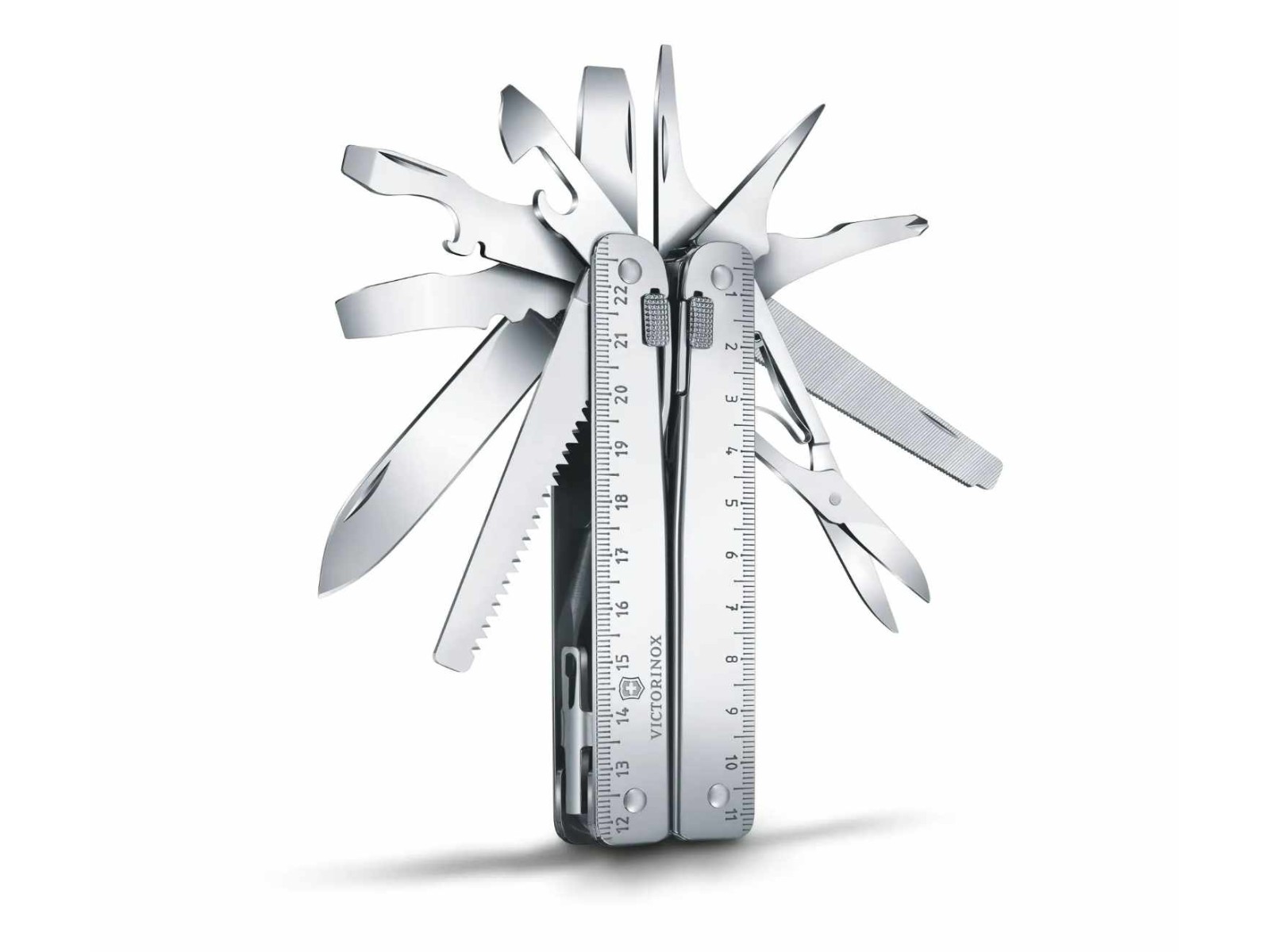 Wenn Ihnen ein normales Taschenmesser nicht mehr ausreicht, benötigen Sie ein Swiss Tool X Plus. Mit seinen 37 Funktionen ist es wie ein kompletter Werkzeugkoffer. Nur viel praktischer, weil alle Werkzeuge in einem einzigen, raffinierten, multifunktionalen Tool verstaut sind. Es ist ein Alleskönner und sein schickes Äusseres beweist, dass sich Design und Funktionalität nicht gegenseitig ausschliessen müssen. Sie finden zu Hause, bei der Arbeit oder draussen in der Natur Millionen von Anwendungsbereichen für dieses Universalwerkzeug.